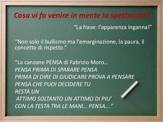Fabrizio moro, giovane cantautore romano classe '75, vince il festival di sanremo 2007 sezione giovani con pensa, una canzone contro la mafia. Chjofy x musical delle exkoala. Il testo della canzone pensa di fabrizio moro, è un inno a coloro che con carattere e convinzione hanno messo la loro vita sul piatto della è un brano musicale composto ed interpretato dal cantautore italiano fabrizio moro, vincitore del festival di sanremo 2007 nella sezione giovani. Se credi di essere uno di essi, mettiti alla prova col nostro quiz, completa i testi delle canzoni di fabrizio e scopri il tuo risultato.