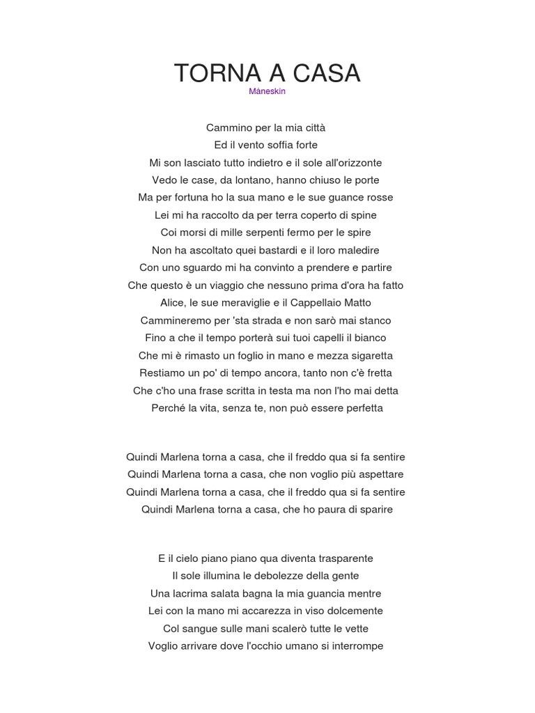 Torna A Casa Maneskin Significato Viaggio Introspettivo Senza Precedenti from freepressonline.it Torna a casa testo canzone cantato da maneskin: Qui sotto trovate il video live di torna a casa dei maneskin e il testo della canzone in anteprima! Ho trovato alcune interpretazioni bizzarre del significato di questa canzone di max gazzè presentata a sanremo 2013 dal titolo sotto casa.