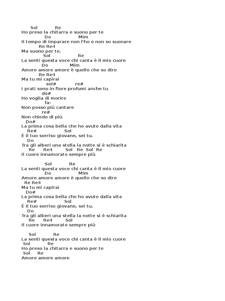 Testo E Accordi Della Canzone La Prima Cosa Bella. Video testo accordi per chitarra della canzone del festival di sanremo 1970 cantata da nicola di bari e i ricchi e poveri. I prati sono in fiore, profumi anche tu, ho voglia di morire, non posso più cantare, non chiedo di più.
