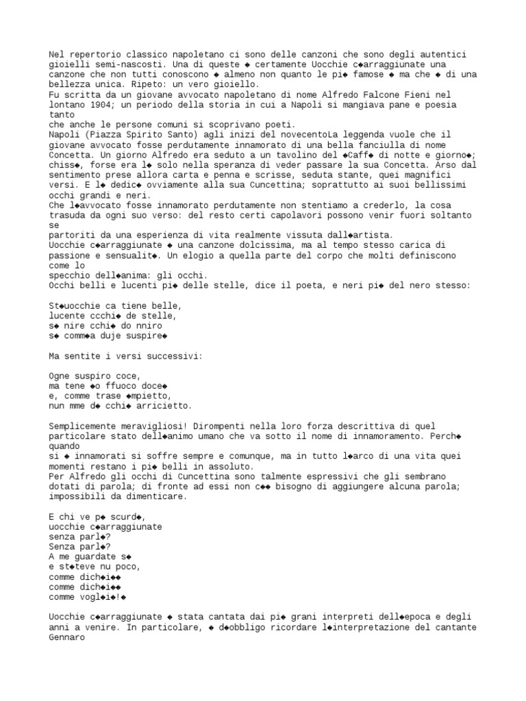 Testo Della Canzone Uocchie C'arraggiunate. Il testo e il video della canzone uocchie ch'arraggiunate di canzoni napoletane: 'st'uocchie ca tiene, belle, lucente cchiù d' 'e stelle, sò nire cchiù d' 'o nniro sò comm'a dduje suspire.