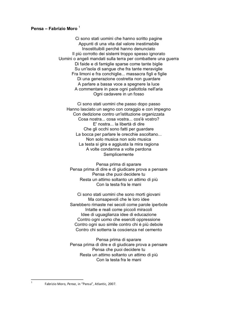 Testo Della Canzone Pensa Di Fabrizio Moro. Ma nessuno potrà fermare mai la convinzione. Chjofy x musical delle exkoala.