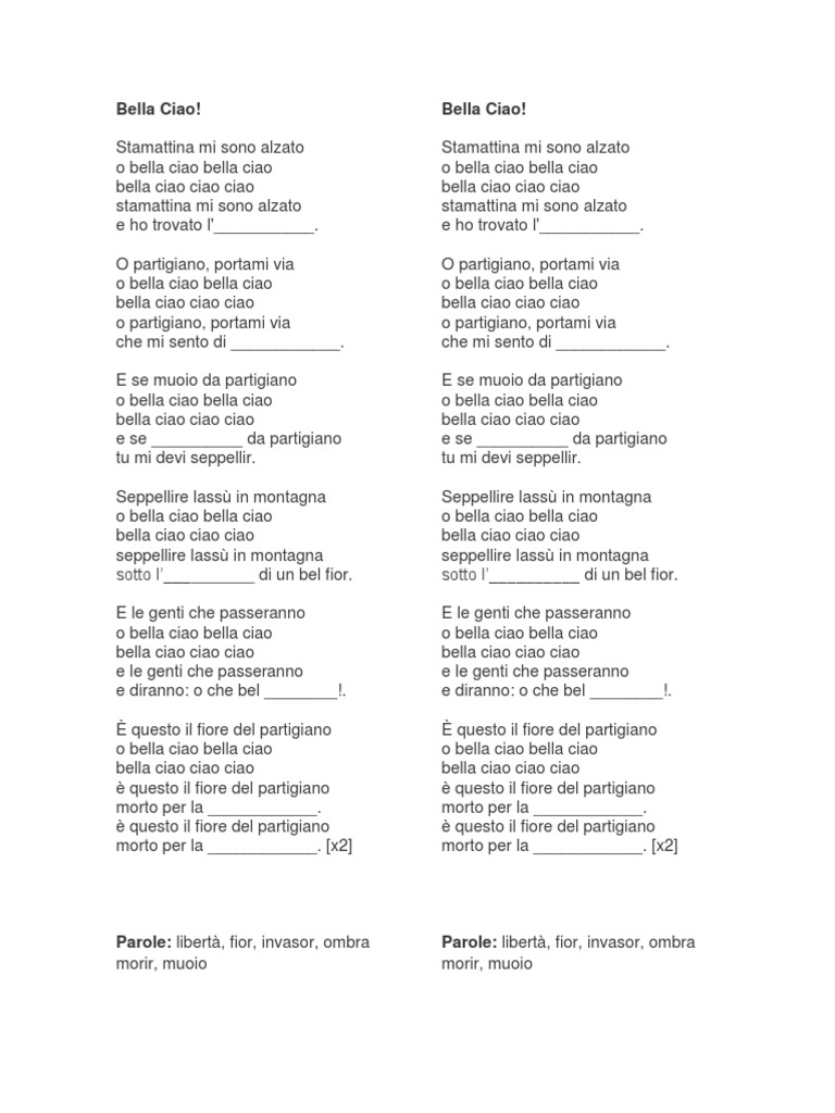 Bella Ciao Canto Popolare Italiano Significato Video Testo E Spartito Musica A Scuola Primaria Ed Infanzia from www.maestroalessandro.it Nel servizio da ballata yiddish a inno partigiano: Il lungo viaggio di bella ciao di jenner meletti, viene spiegato come già nel 1919 una melodia simile a quella canzone era stata incisa a new york, in un brano chiamato koilen. E la gente che passerà e dirà o che bel fior !
